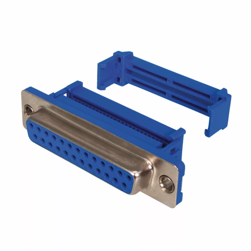 D-SUB 25 szalagkábeles aljzat, műanyag szorítóval, szigetelt, kék - NONAME