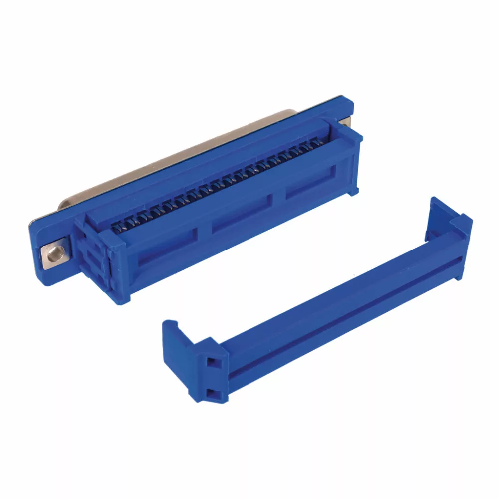 Csatlakozó, D-SUB 37, szalagkábeles aljzat, műanyag szorítóval, szigetelt, kék