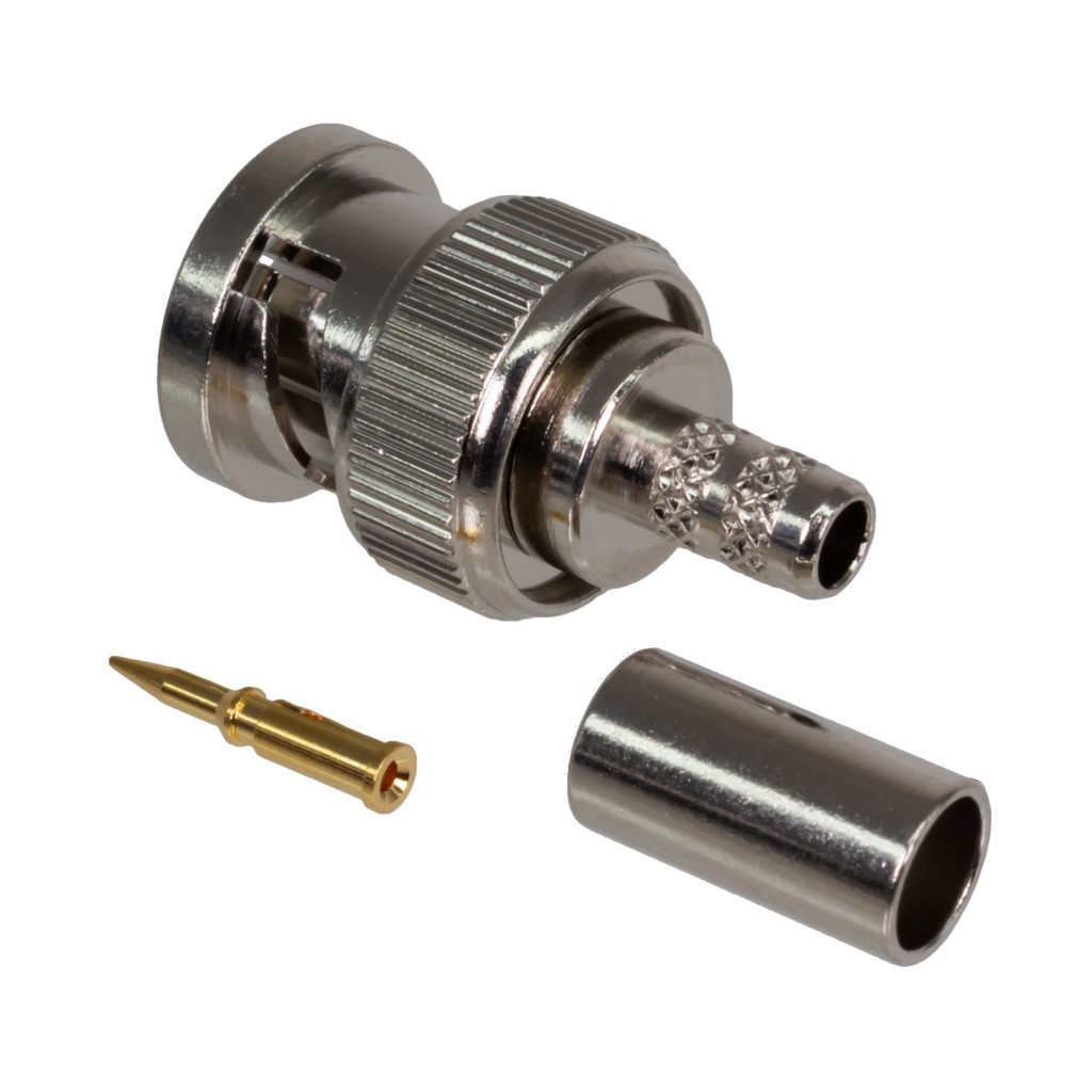Csatlakozó, BNC 50Ohm dugó, crimp, lengő BNC/RG58 szigetelő:DELRIN