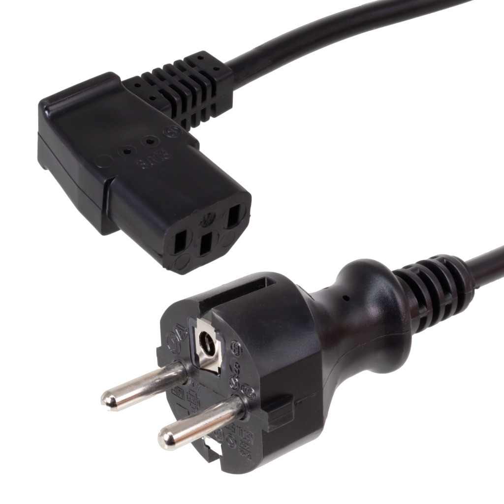 Netzkabel, 2,5m 3x1,00mm², 90°-OS Schwarz Steckdose VDE,UL 250V/16A