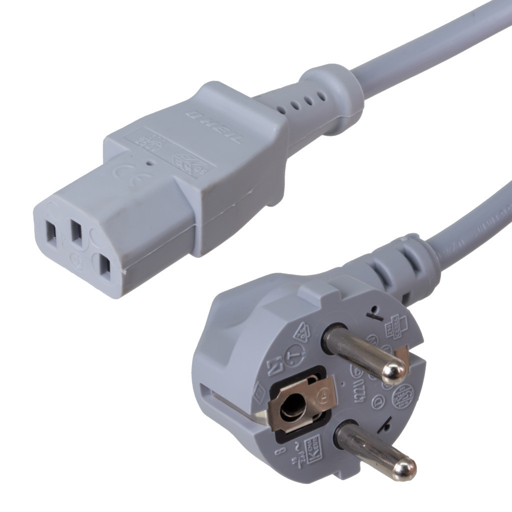 Netzkabel, 2,5m 3x1,00mm², Grau Steckdose mit Steckverbinder VDE,UL 250V/16A