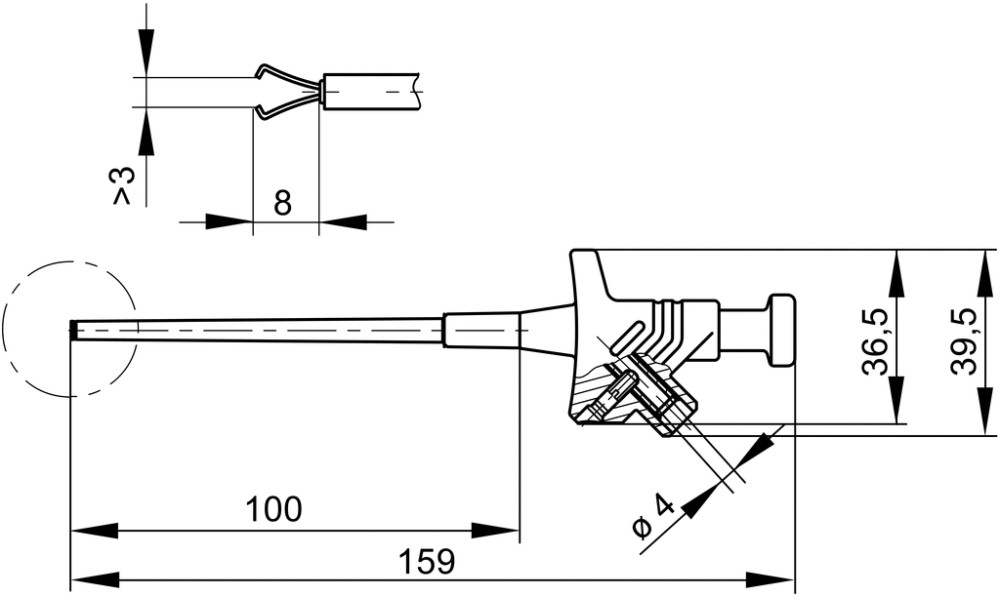 Klemmprüfspitze Schwarz für 4mm Bananestecker 60V 4A