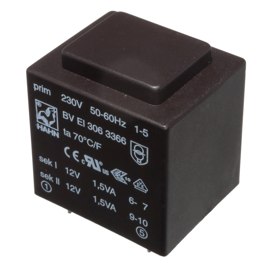 BVEI3063364 - 2X9V / 164mA 3VA transzformátor - HAHN