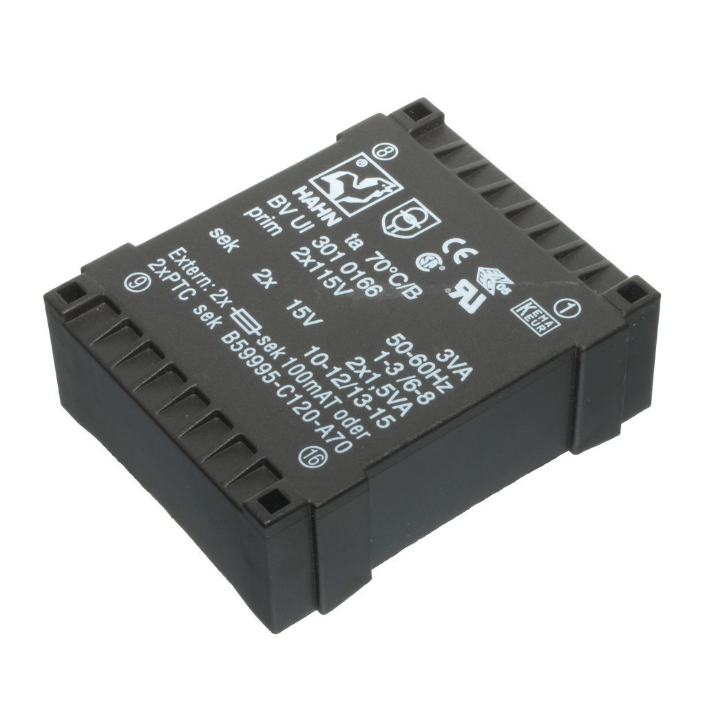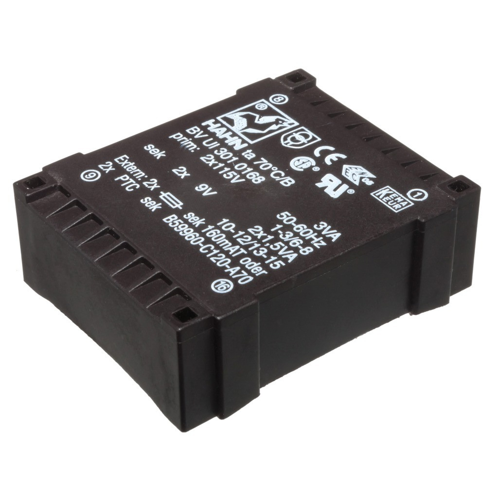 BVUI3010168 - 2X9V / 167mA 3VA ,FLAT-type , Primér: 2X115V transzformátor - HAHN