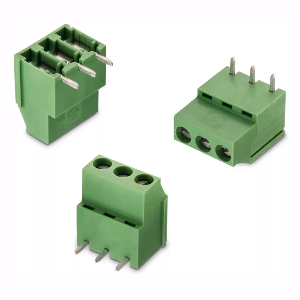 Steckverbinder, 90° Anreihklemme für Leiterplatte 3-polig RM=5.00mm Grün 18mm Höhe 90°
