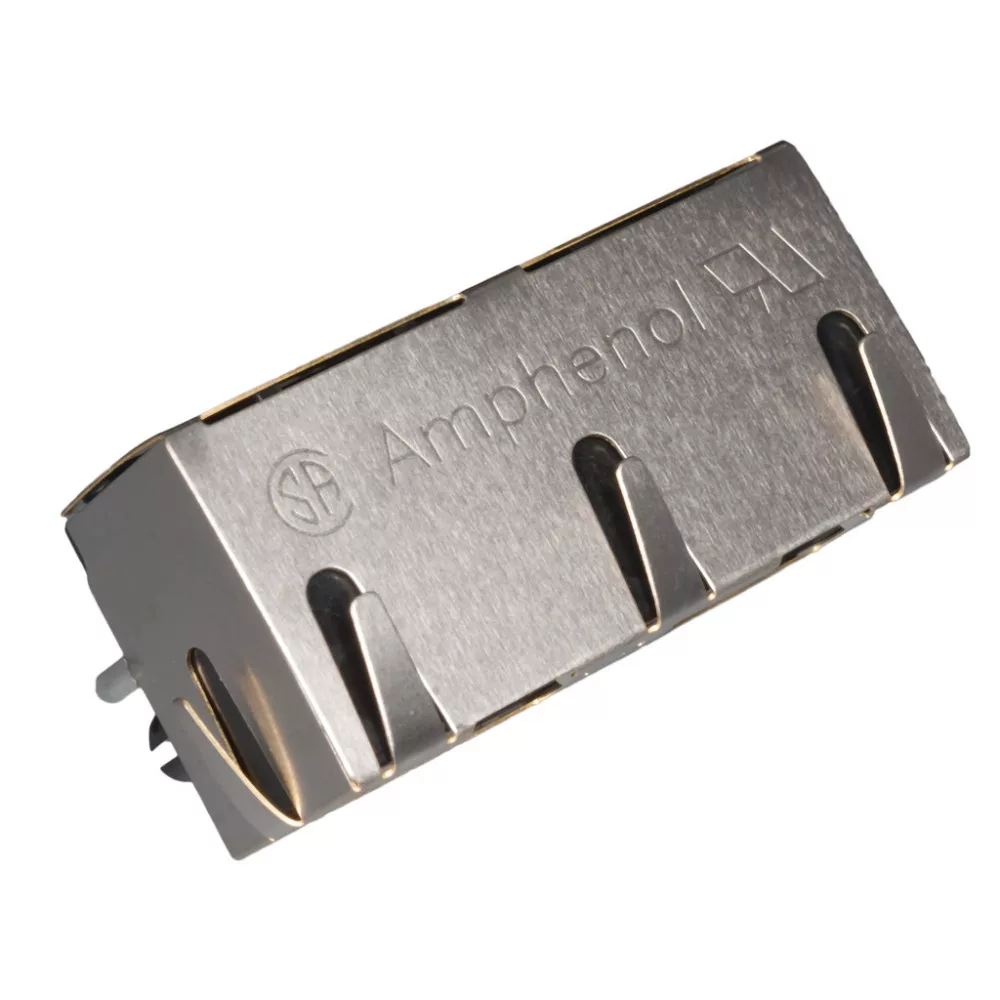 RJHSE538002 - RJ45 8-pólusú aljzat NYÁK-ba 2-portos árnyékolt - AMPHENOL