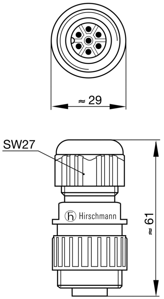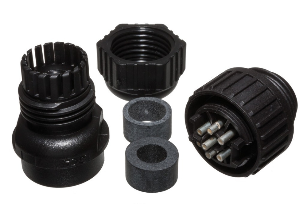 CA6LS(934126100) - ipari 6+PE-pólusú dugó, lengő, fekete IP67, 6-12mm kábel - HIRSCHMANN