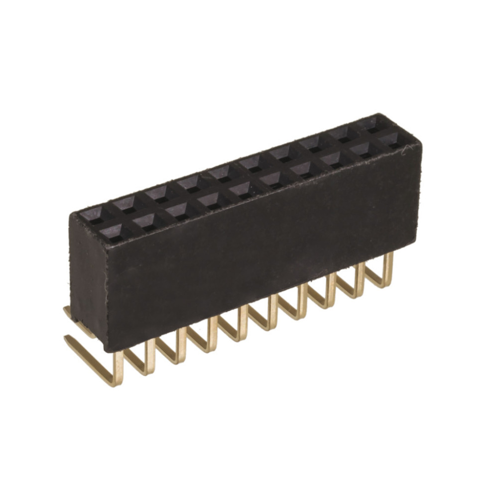 Connector, 90° 2x10-pole Female Header for PCB