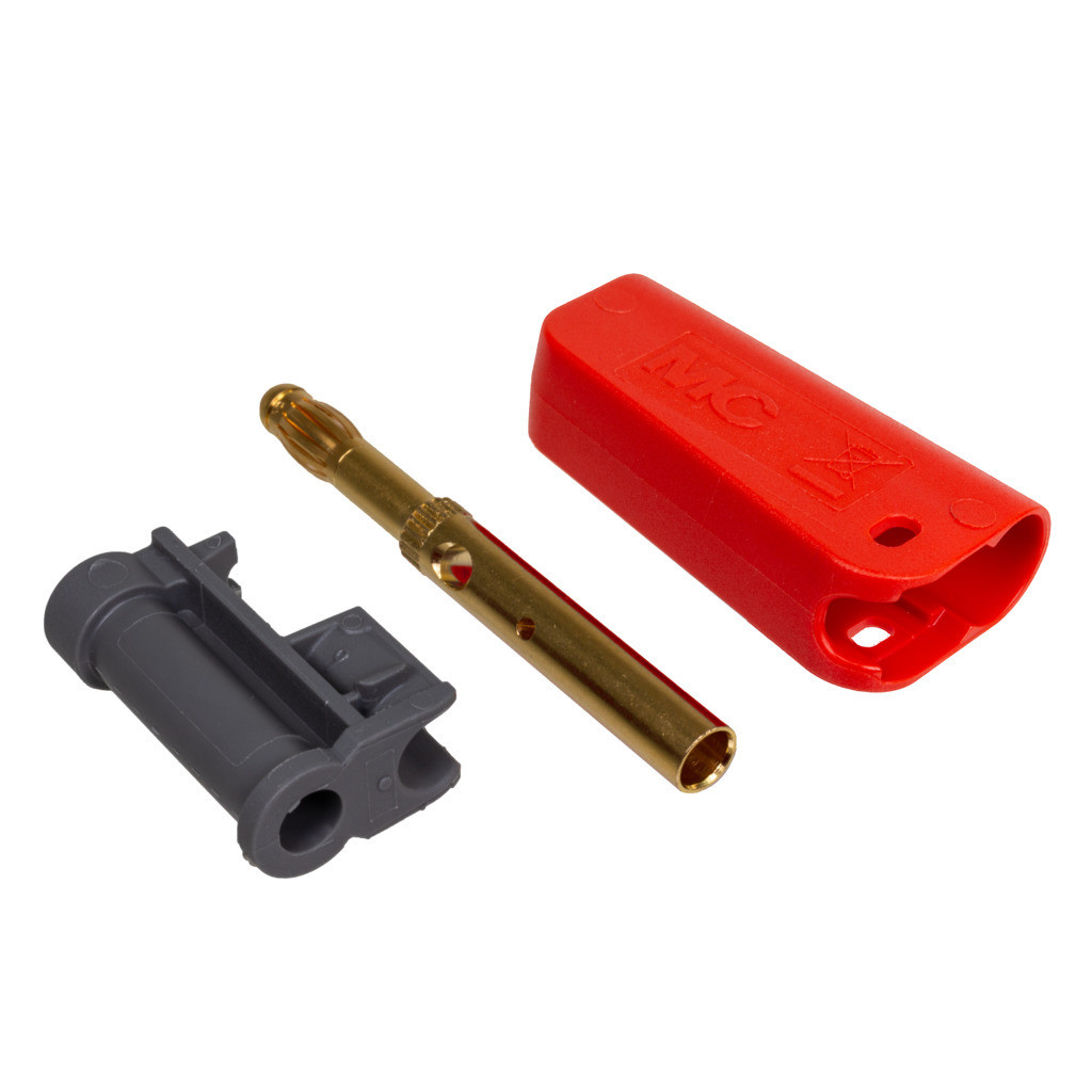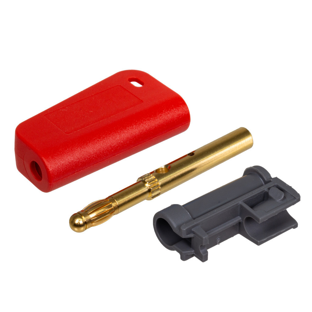 Connector, 4mm Banana Plug with cage spring, gold-plated, with Socket
