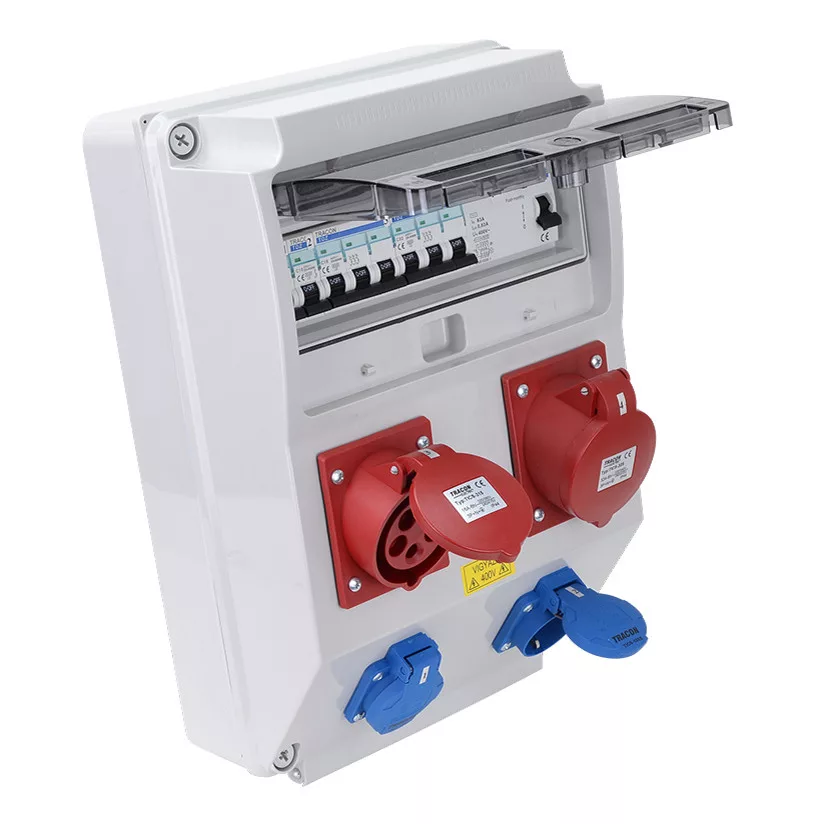 TDB12-12MVSK - Egyéb, szerelt csatlakozó doboz, 2xSchuko, 2x3P(1x16A/1x32Amper), védelemmel - TRACON