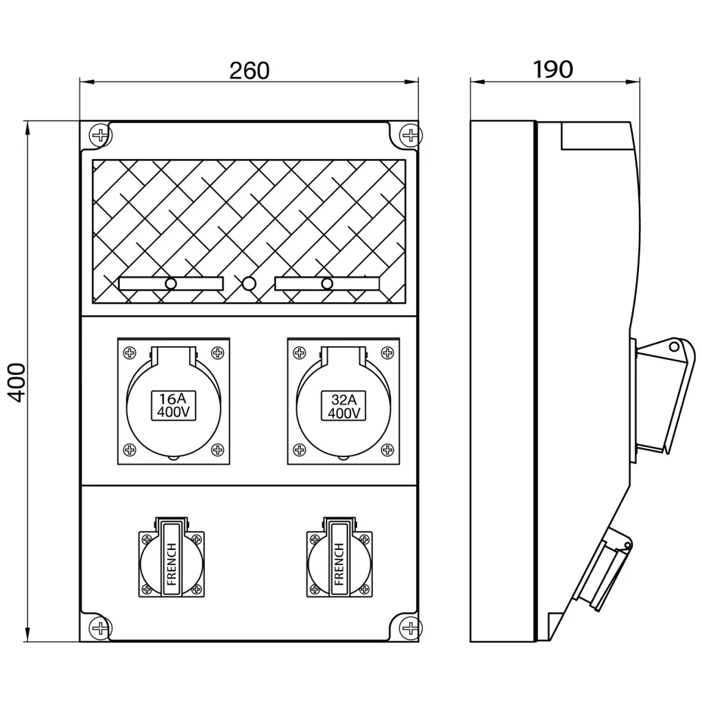 Egyéb, szerelt csatlakozó doboz, 2xSchuko, 2x3P(1x16A/1x32Amper), védelemmel