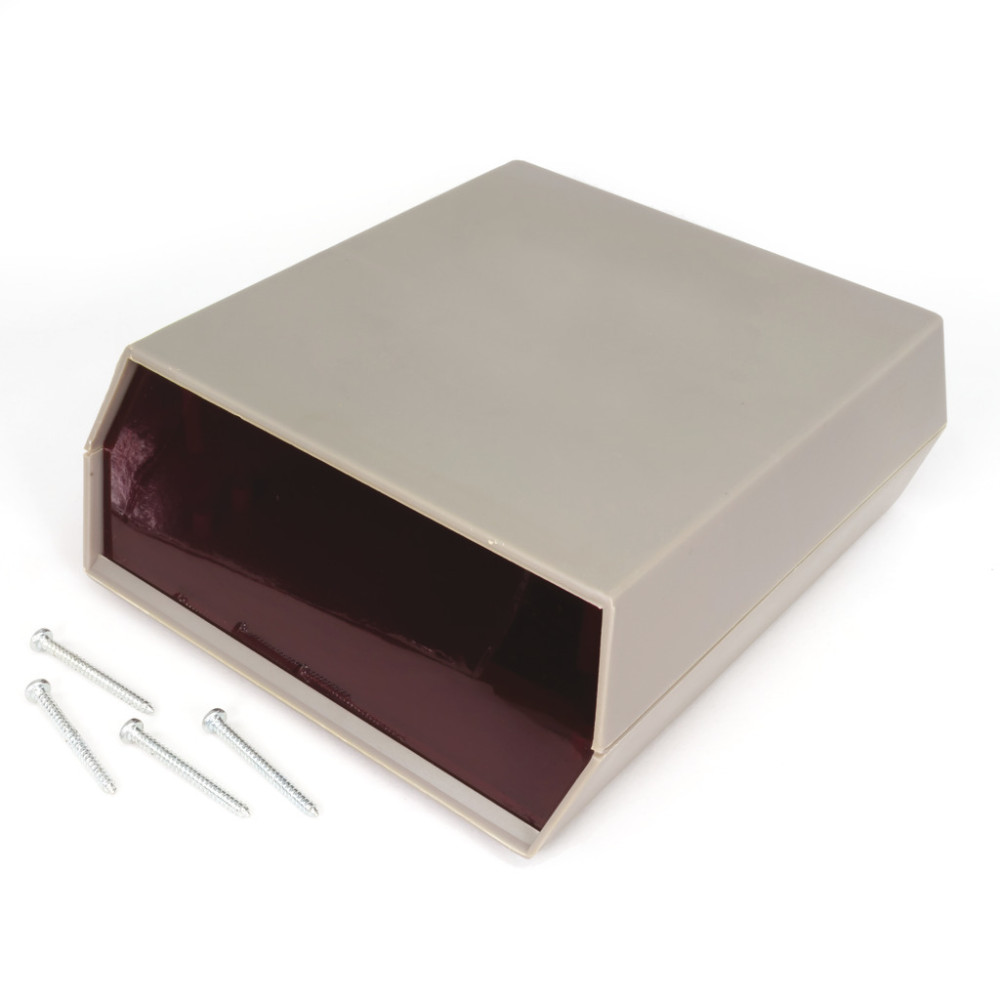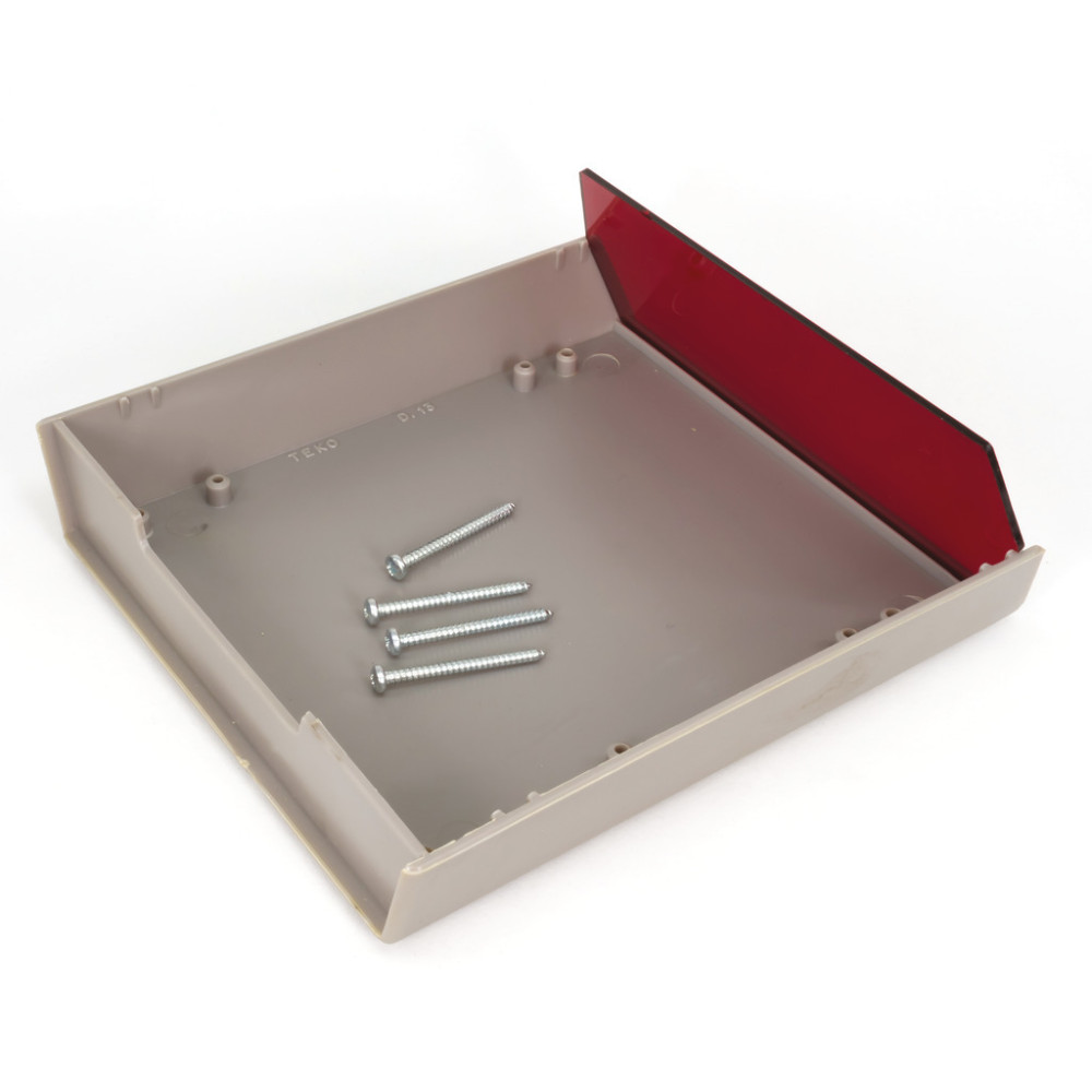 TEKO műszerdoboz, 135x150x54mm asztali műszerdoboz piros PLEXI előlap sötétszürke