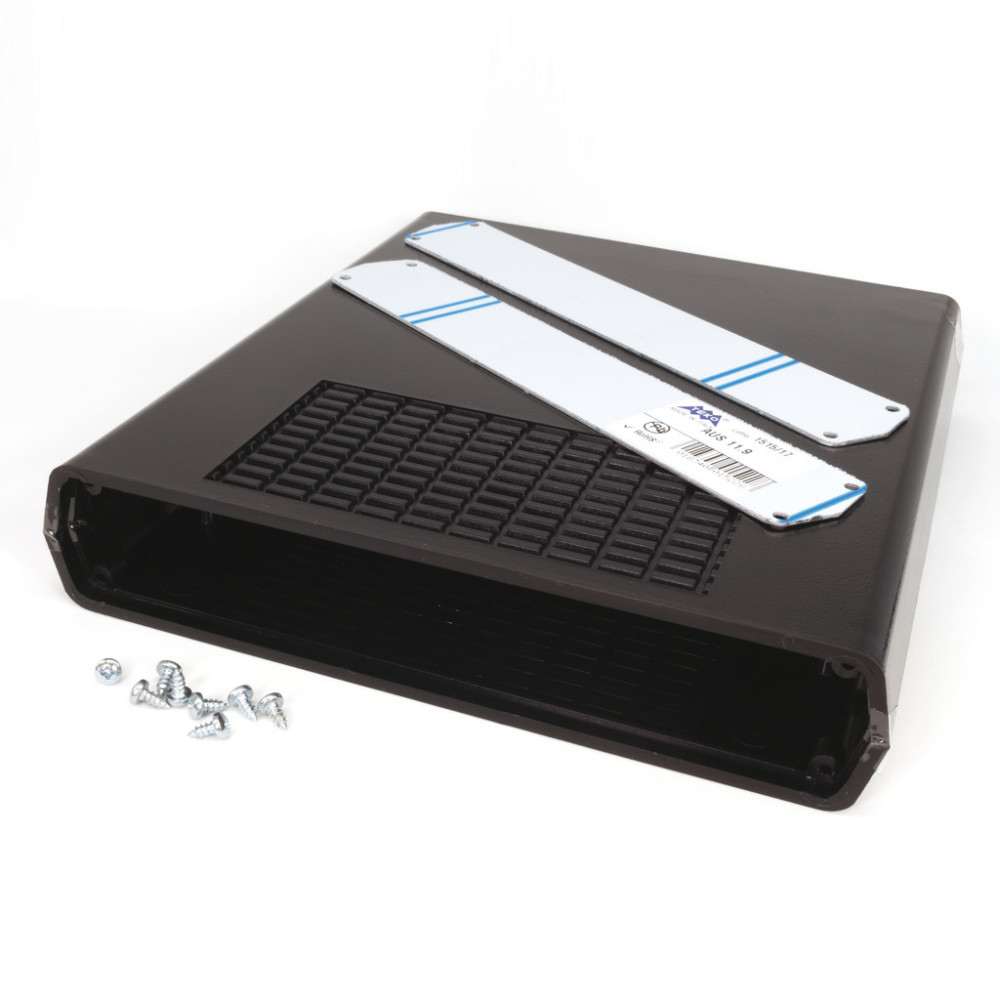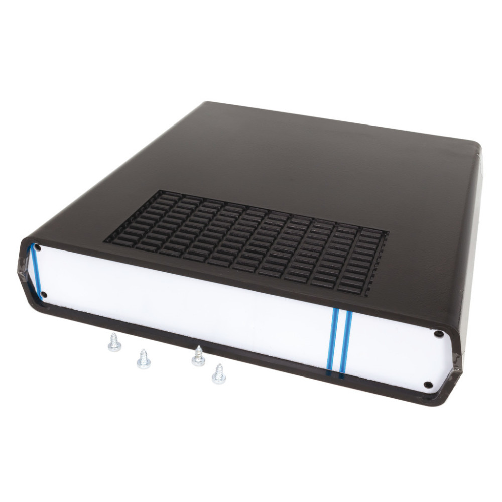 TEKO műszerdoboz, 198x178x36mm lapos, ALU előlap asztali fekete (9004)