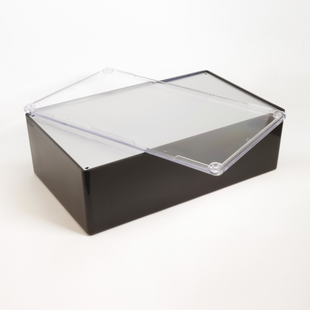 TEKO műszerdoboz, 215x130x69mm Plexi+ALU tető fekete RAL9004
