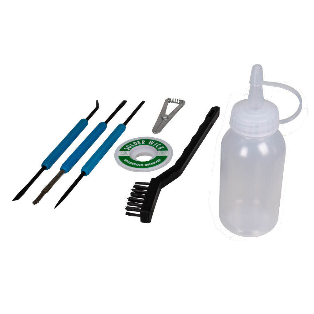 TO-SA11 - Szerszám, NYÁK-javításhoz kaparó és ecsetkészlet, kiforrasztó zsinór - SOLDER PEAK